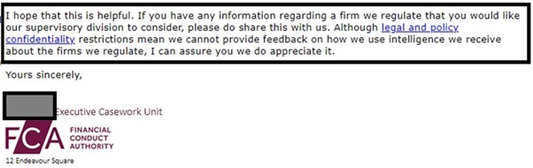 I was also asked to supply intelligence to the Executive Casework Unit of the Financial Conduct Authority regarding any untoward behaviour by any of the Bounce Back Loan Lenders, something I did multiple times.