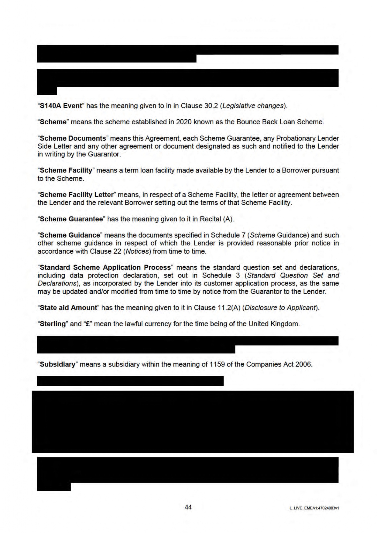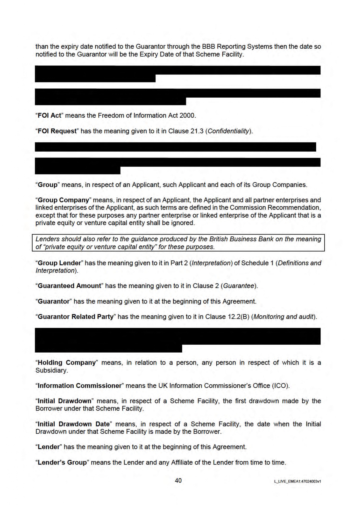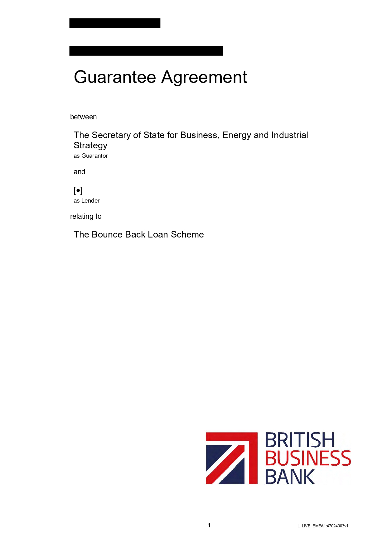 Below you will find the Government / Lender Guarantee Agreement regarding Bounce Back Loans. Be aware this has been heavily redacted by the British Business Bank who sent it to me.