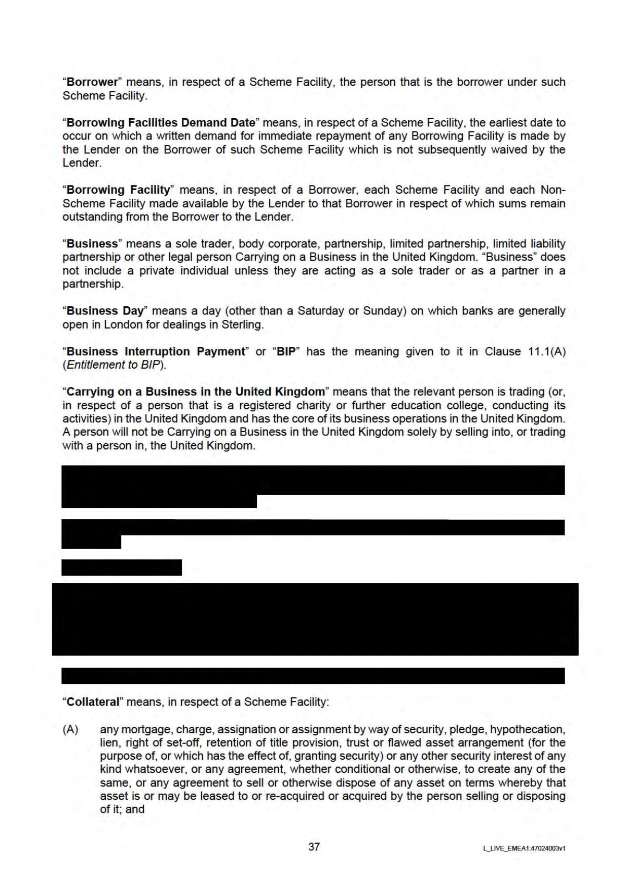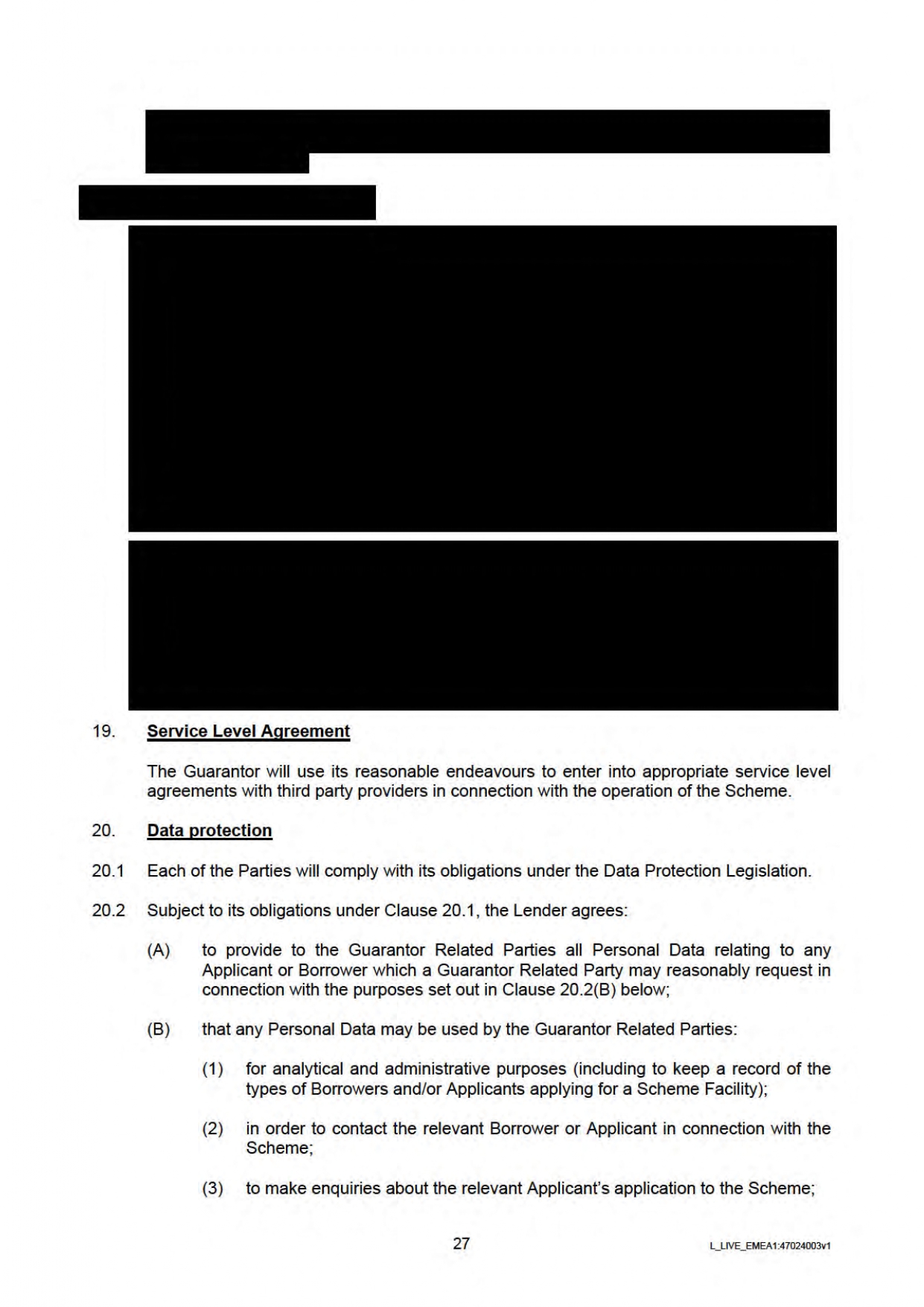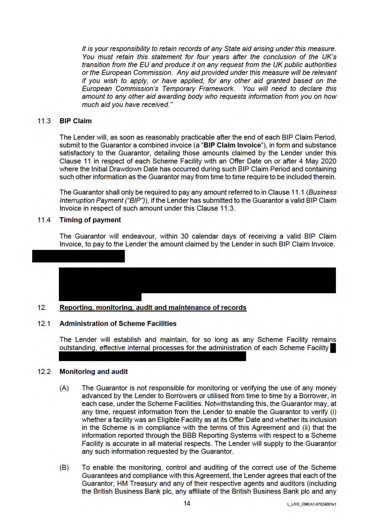 Below you will find the Government / Lender Guarantee Agreement regarding Bounce Back Loans. Be aware this has been heavily redacted by the British Business Bank who sent it to me.