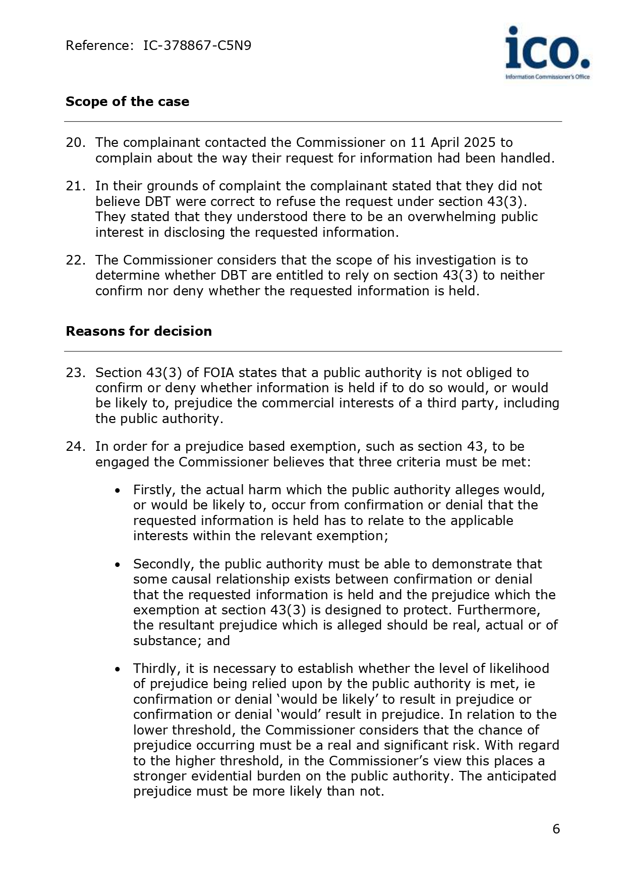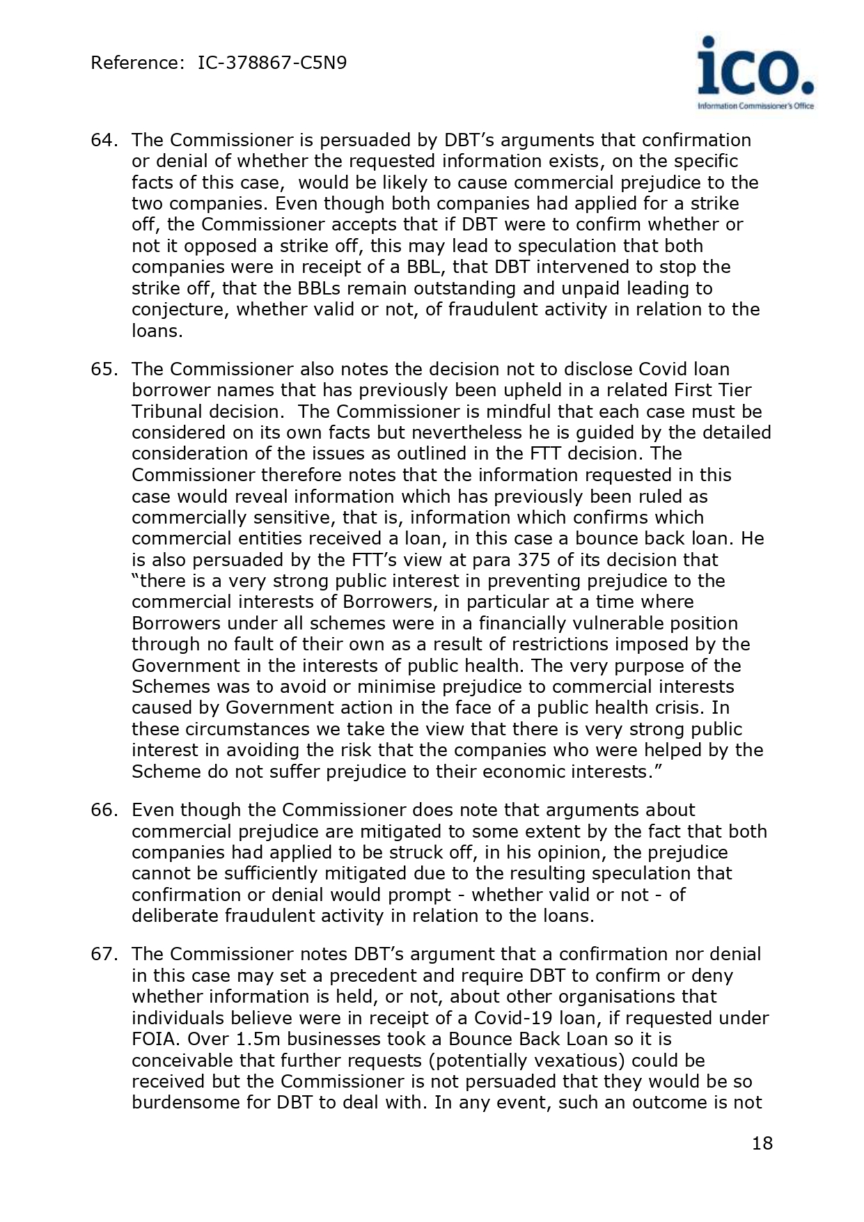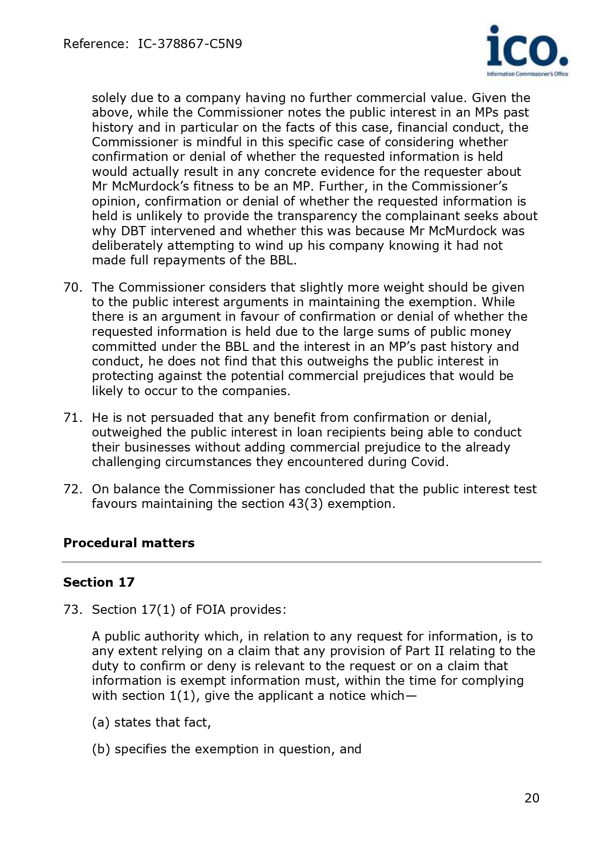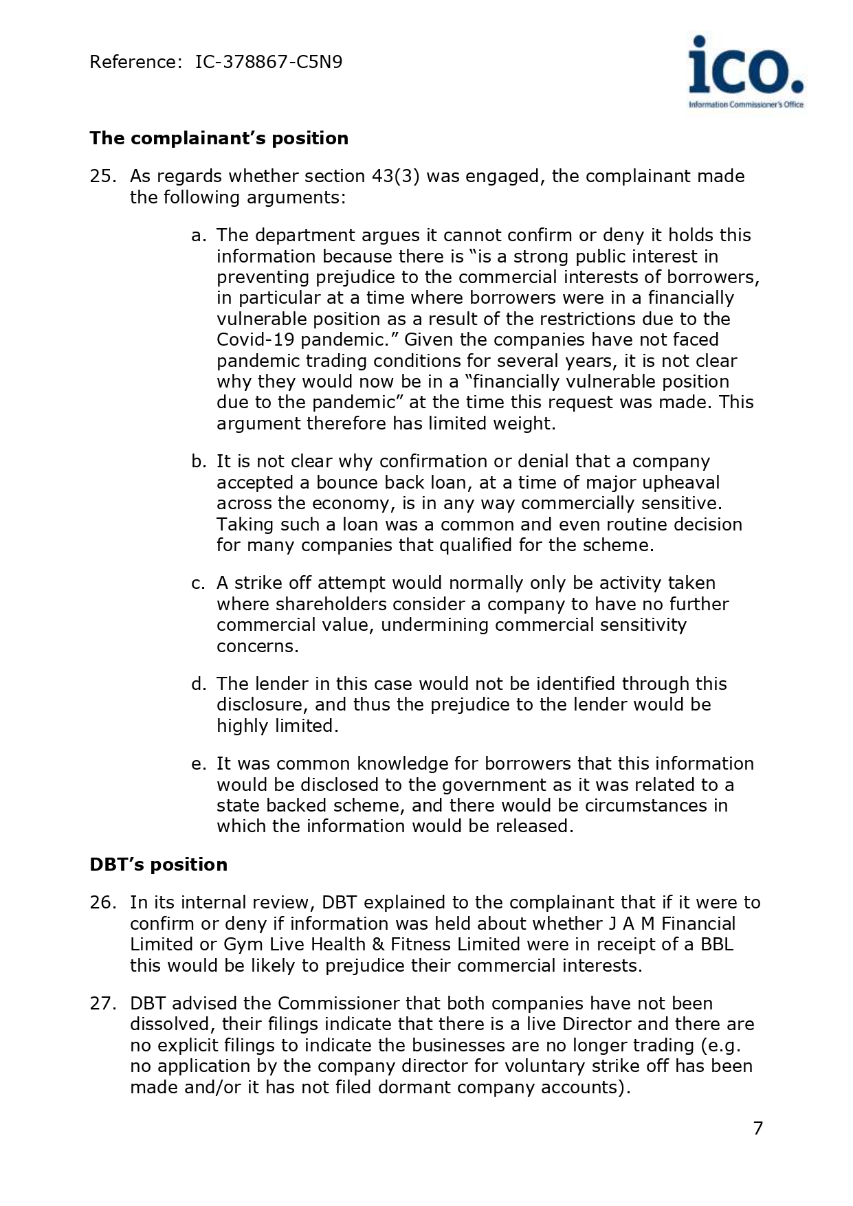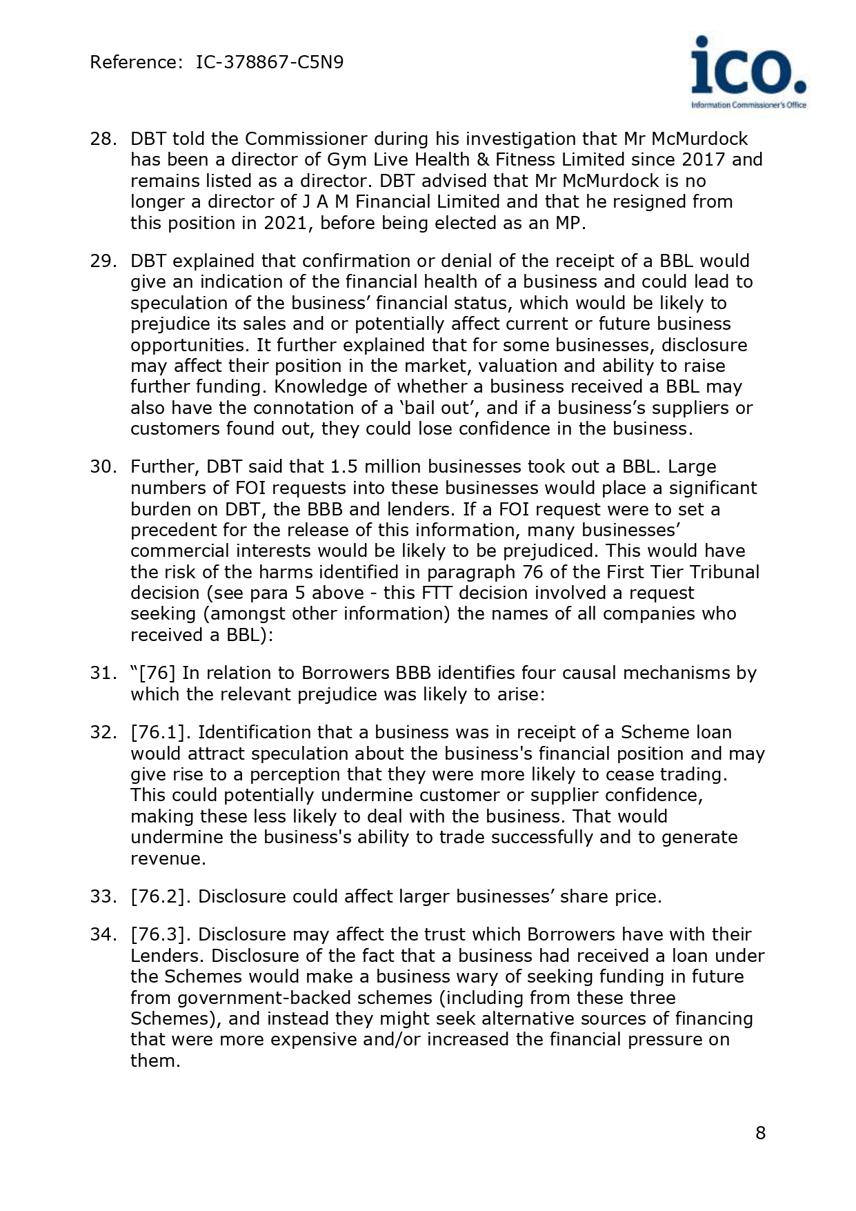Now, much more recently, word got out that Companies linked to James McMurdock MP had got Bounce Back Loans, on which there are allegedly questions to be answered, and as such someone, I imagine one of the journalists sniffing around the story, decided to go to the Information Commissioners Office in the hope they would overturn the decision by the Department for Business and Trade to refuse to confirm or deny such, with Freedom of Information Requests they had submitted.