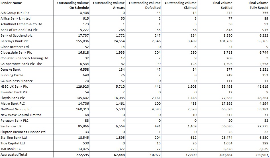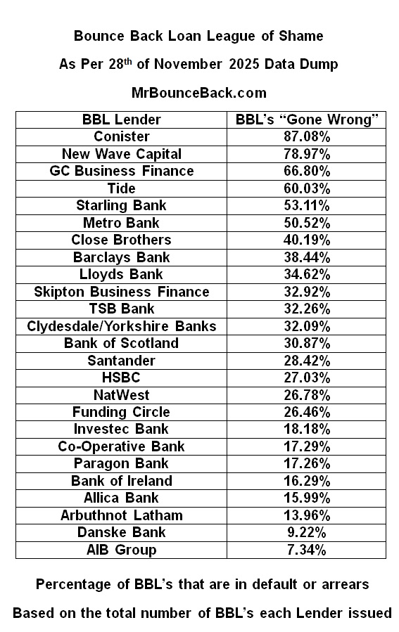 I have dedicated a section of the website to each individual lender, so feel free to take a look as it will allow you to see just how many BBL defaults, BBL customers they have in arrears and also just how many BBL guarantee claims each lender has put in and how much they have so far been paid out.